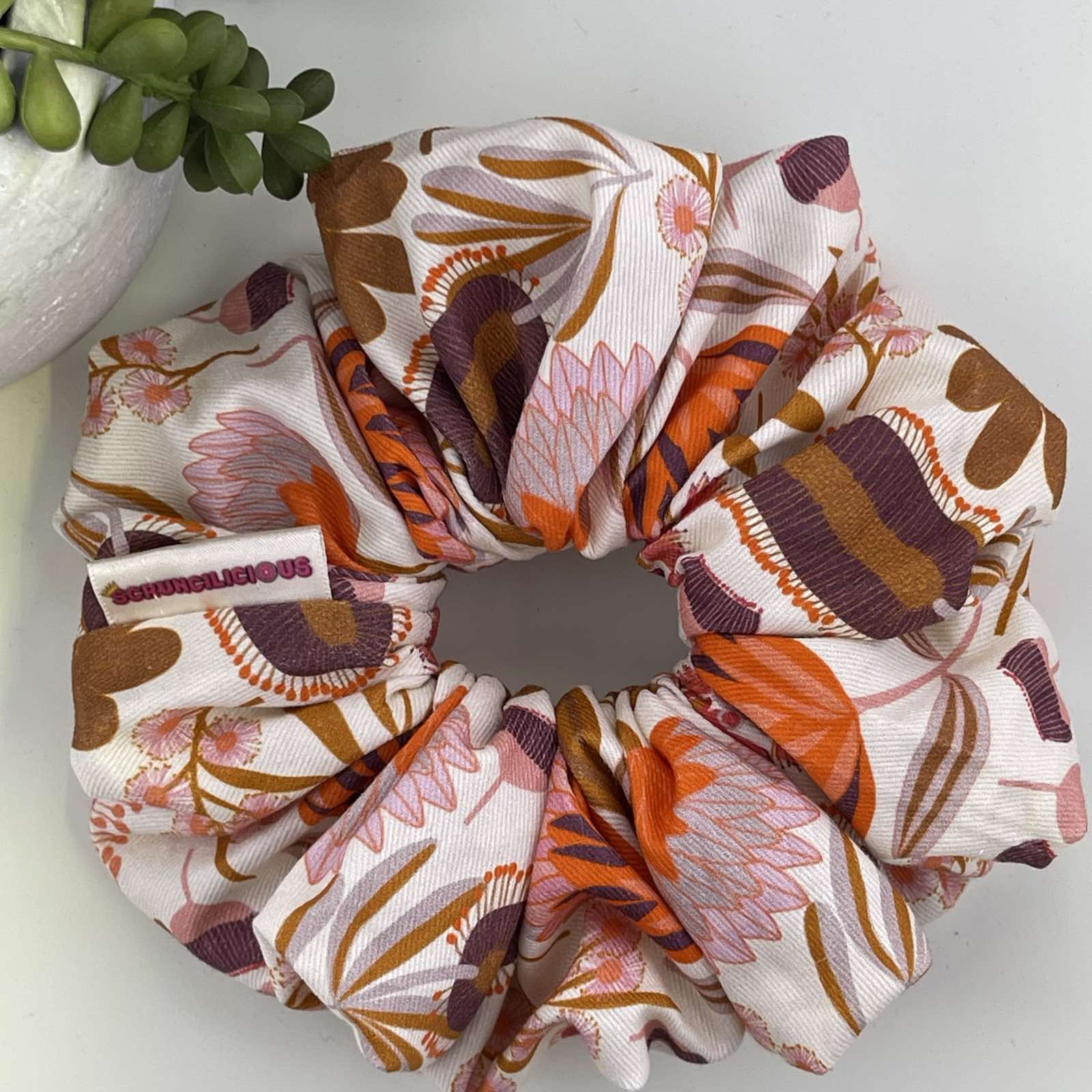 This Scrunchie will give you the feeling of jumping through the kaleidoscope of fallen Autumn leaves without the mess.